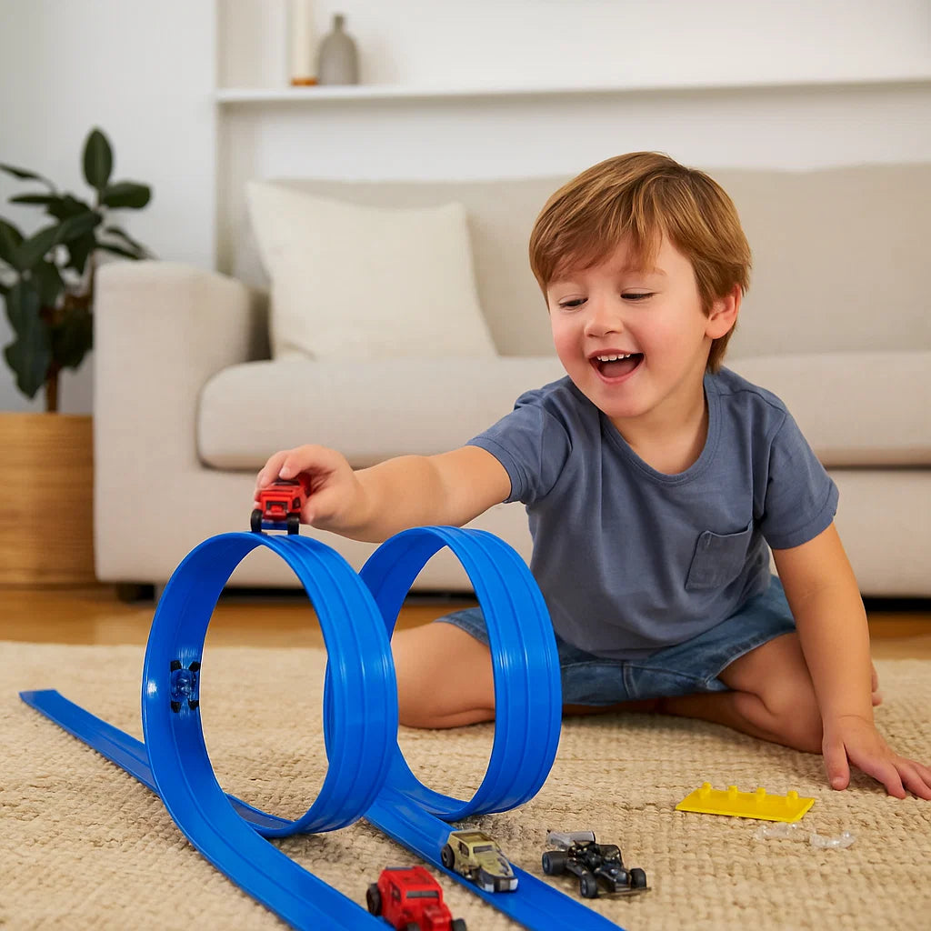 - 🚗 Creativity without limits – Kids can design and redesign their own unique race tracks again and again.