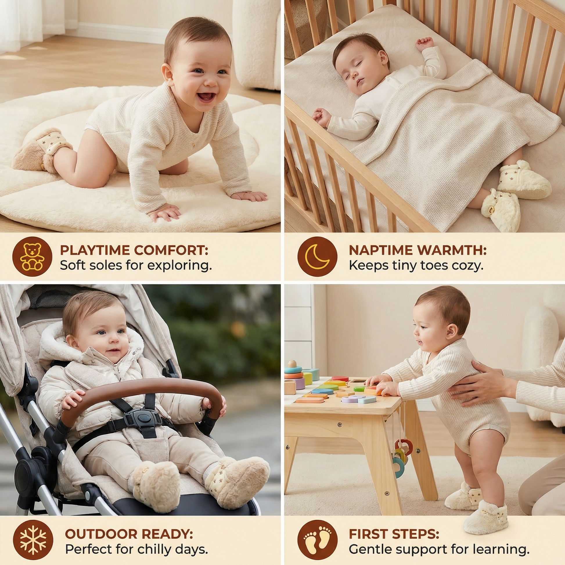 - 👣 Non-slip soles for stability: Ensures your baby can stand and crawl safely without slipping.