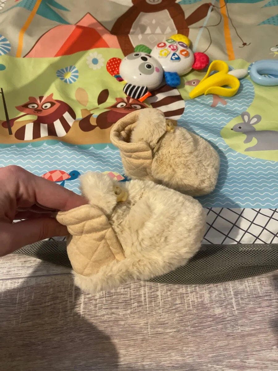 These fluffy sock shoes are a lifesaver for the winter months. They keep my baby’s feet warm and cozy.
