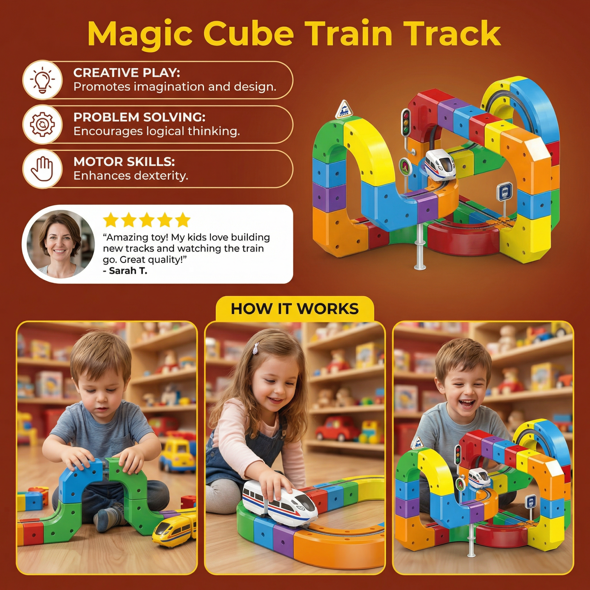 "My son absolutely loves this Magic Cube Train Track! He spends hours building new tracks and watching them come to life. It’s fun, educational, and perfect for boosting his creativity and focus."