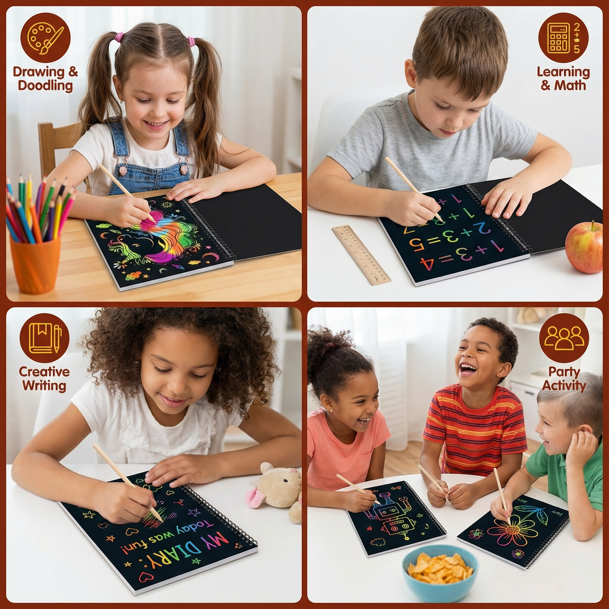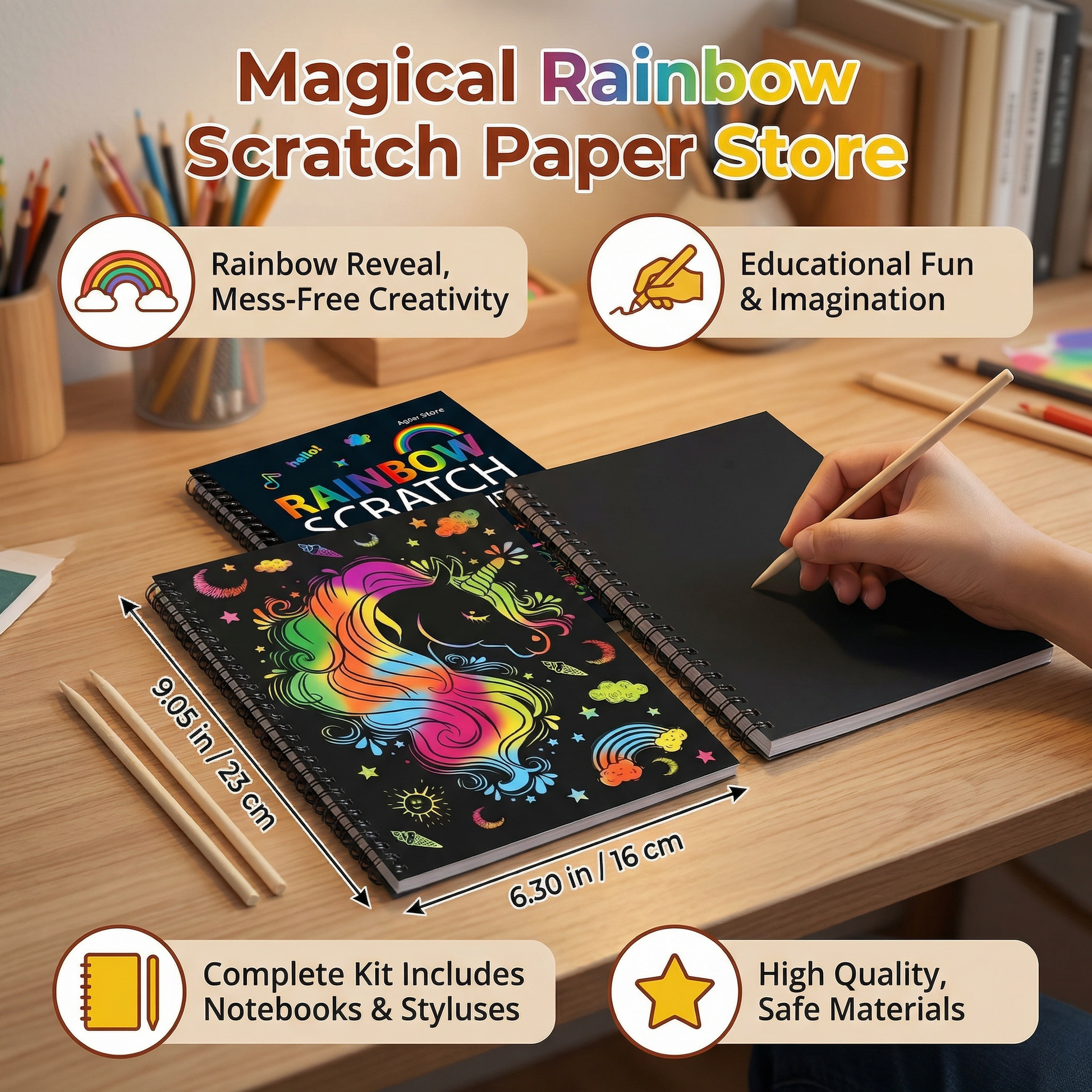 The Magical Rainbow Scratch Paper is absolutely delightful. My kids love revealing the bright colors underneath with every stroke.