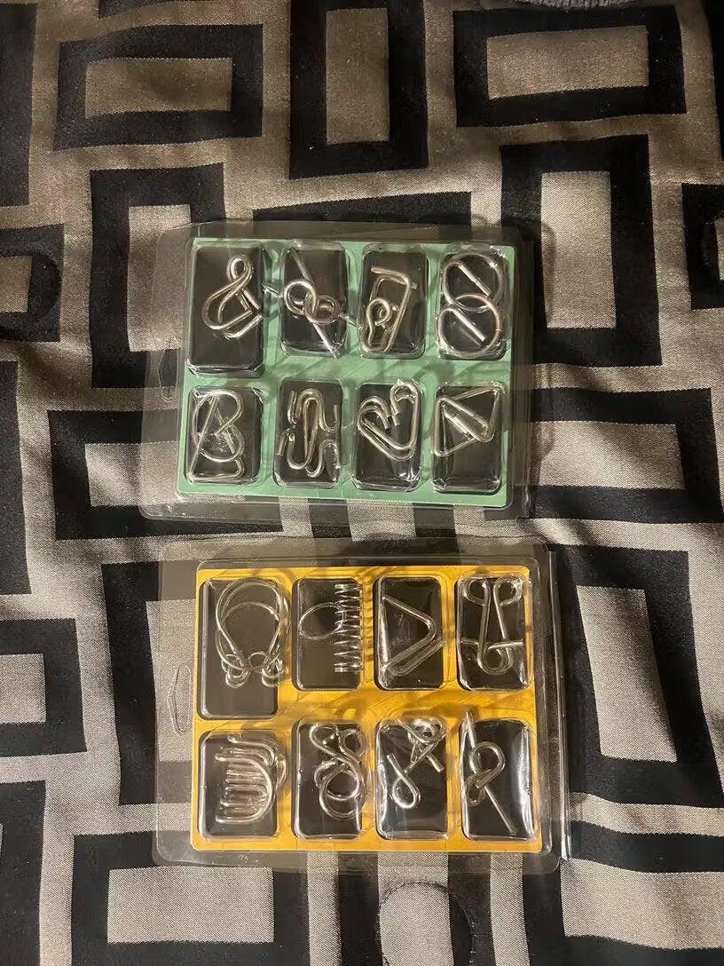 "I bought this puzzle ring set for family game nights, and it’s been a huge hit with both kids and adults because it really gets everyone thinking. The metal is sturdy and reusable, so it’s a fun challenge we can enjoy over and over again without it wearing out."